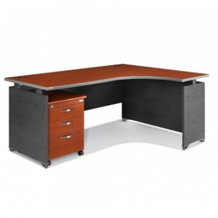 - Bàn có 1 hộc ngăn kéo ray bi và một ngăn tủ có cánh mở có khóa, bề mặt hộc và cánh phủ laminate